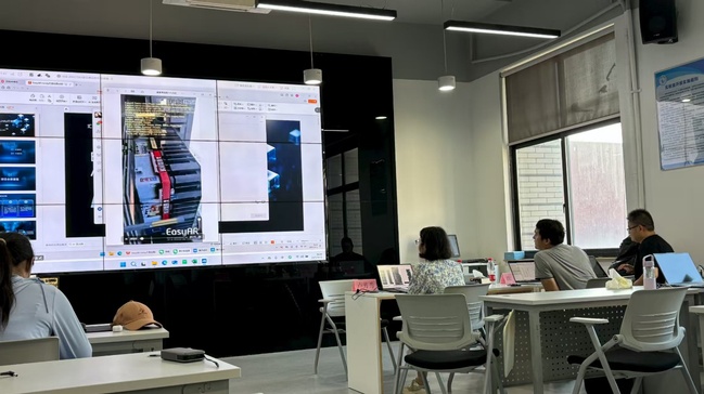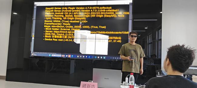 为增强员工对技术实际落地的感知,课程组织员工赴上海大学工业巡检实验室进行实地教学。在卢芳芳老师的带领下,同学们亲眼目睹AR技术如何赋能工业运维流程。实验室研究人员演示了基于AR眼镜的设备巡检与操作辅助系统,信息实时叠加于真实场景中,实现“所见即所得”的交互效果。通过亲身体验,同学们对EasyAR Mega提出的“赋能千行百业”有了更直观的认识,也对后续开发环节充满期待。从采集到开发,实战闭环锤炼技术能力。