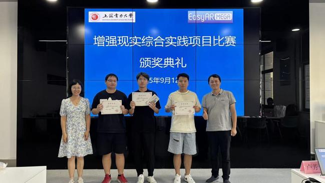 在专家一对一指导下,各小组基于自建数字地图开发AR应用,将创意逐步转化为可视化的交互作品。课程最后一天举行项目路演与评审会。各小组从设计理念、实现路径、团队协作及难点突破等角度进行系统汇报,展示包括校园导览、设备仿真操作、历史场景复原等多类AR应用。由企业专家与校内教师共同组成的评审团,从创新性、完成度、实用性与表达效果等维度进行综合评议,最终评选出一等奖1项、二等奖2项、三等奖3项。