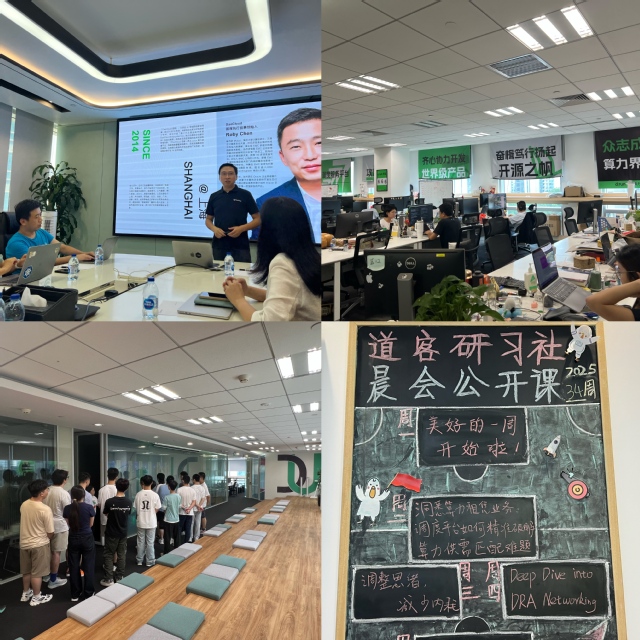 9月8日上午第一站参观DaoCloud(道客)公司。在道客公司,同学们参观了现代化的企业展厅与技术工作环境,听取了公司技术专家关于云原生技术发展趋势及企业级落地案例的精彩分享,并就开源社区贡献、技术选型、职业发展等话题与一线工程师进行了深入热烈的座谈交流。此次企业行不仅让抽象的技术概念变得触手可及,更极大地拓宽了同学们的行业视野,激发了他们的技术创新热情。
