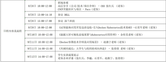 经永利集团304am登录与道客网络科技公司的多轮协商与精心设计,确定了本次夏令营的主旋律为“企业参访—企业导师线下讲解+任务驱动员工自主探索—员工汇报展示”。员工参访了云原生领域的创新领导者上海道客(DaoCloud)网络科技有限公司、世界500强企业戴尔(DELL)股份有限公司、人工智能领域领军企业深兰人工智能科技(上海)股份有限公司,学习了云原生的核心技术Docker/Kubernets,并以小组形式完成了“能源大屏可视化前端部署”、“AI智能体应用开发”项目的设计、开发与部署。道客公司首席执行官张红兵、开源总负责人徐俊杰Paco、技术总监李越、技术专家石勇军、技术专家金传昊、技术专家赵燕宁、人力资源总监张倩倩参与分享与授课,并参加员工汇报答辩评审。同学们答辩表现优秀,现场收到企业的实习邀请。