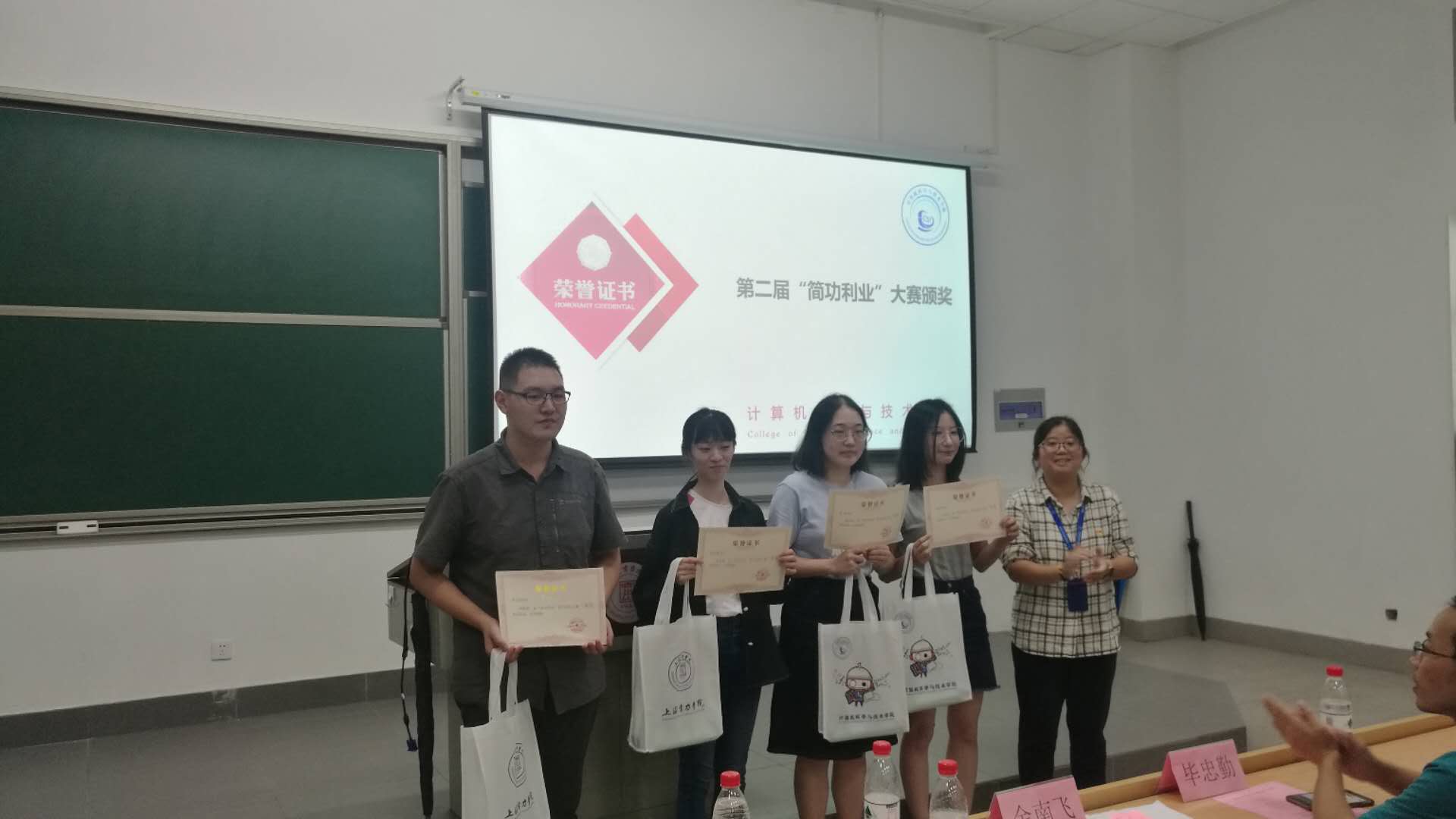 第二届“简功利业”简历制作大赛颁奖也随即进行,余南飞老师、毕忠勤老师、孙倩倩老师宣读获奖名单并为获一、二、三等奖的同学颁奖,同时在颁奖仪式上展示了四位一等奖获得者的简历作品,结合简历展示,为大家进行了简历要素分析,对如何更好的制作简历进行了指导。