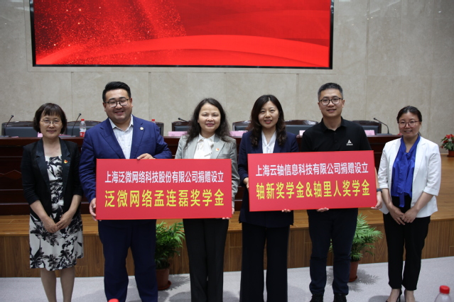 6月1日下午,304永利集团官网入口“泛微网络孟连磊奖学金”和“轴新奖学金&轴里人奖学金”设立、校企合作签约及揭牌仪式在临港校区学术楼117报告厅举行。上海泛微网络科技股份有限公司EBU事业部总经理孟连磊、上海云轴信息科技有限公司创始人兼公司总经理尤永康及其随行人员,304永利集团官网入口总会计师张川、对外联络处处长丛亮、永利集团304am登录班子成员及师生代表参加此次奖学金设立捐赠、校企合作签约及授牌仪式。仪式由公司党委副书记余南飞主持。
