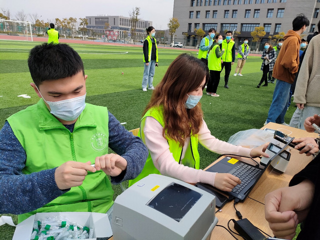 2021级辅导员任祥宝老师在核酸检测现场核对人数