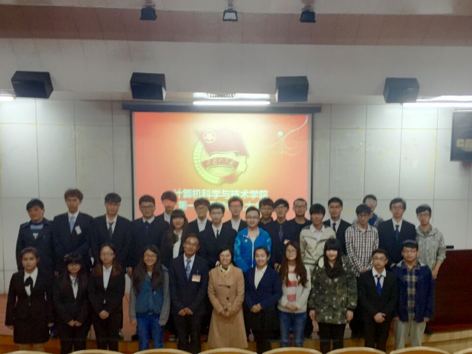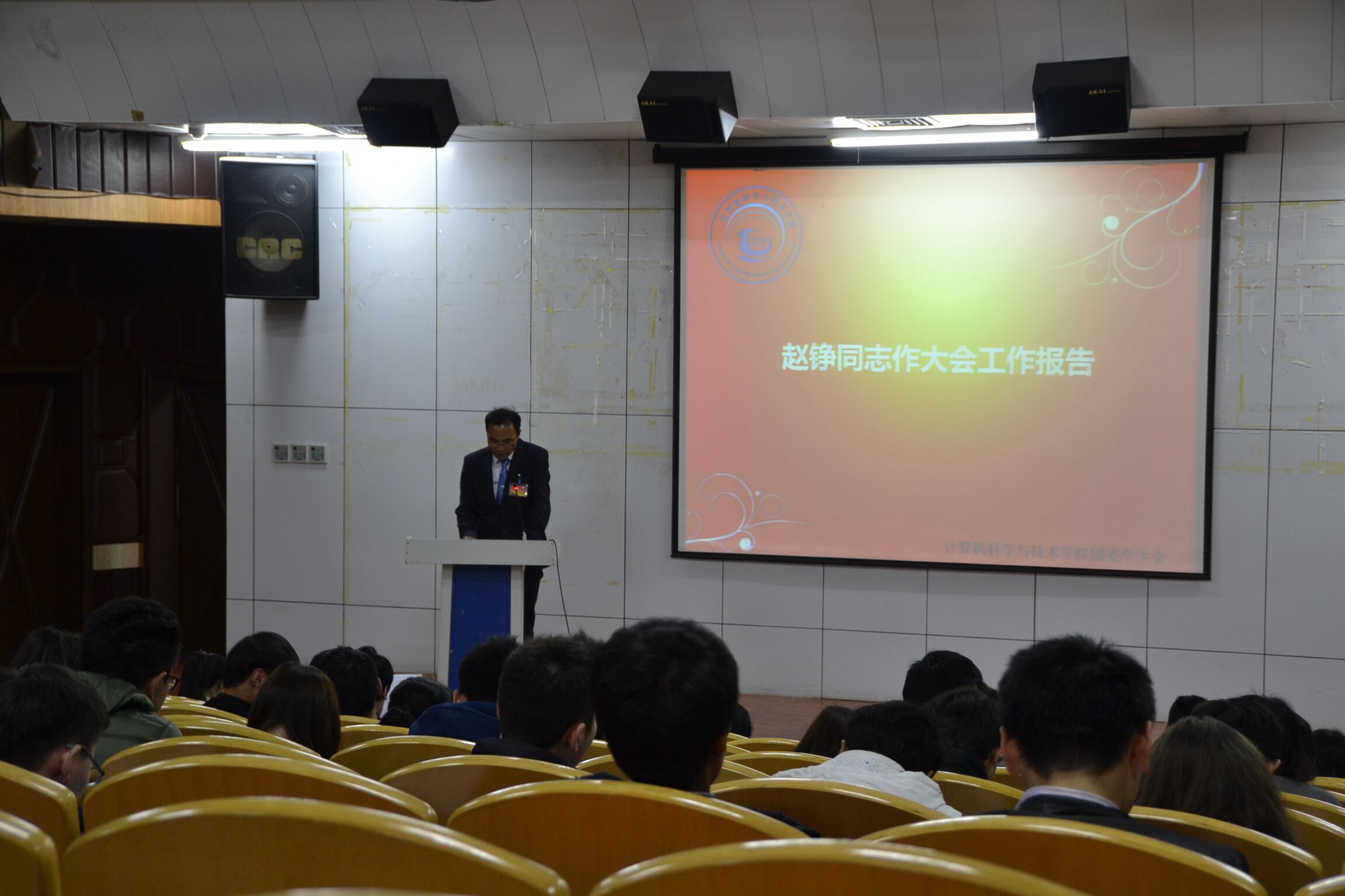 大会在激昂向上的共青团团歌中拉开序幕。首先,公司党委书记张仙智老师上台致词,她指出公司团学将贯彻党的十八大、十八届三中、四中全会精神,充分发挥共青团优势,组织带领全院青年践行社会主义核心价值观并扎实推进团学工作。紧接着,校团委郭克楠老师发表讲话,肯定了在校团委的领导和公司党委的带领下,公司团委在人才培养、科创研究、团队建设等多个方面取得的可喜可贺的成就。随后,大会筹备委员会副主任杜志豪同学做大会筹备工作报告,详细介绍了本次大会的主要议题、大会代表分配名额和原则和委员候选人产生情况等筹备工作。大会筹备委员会提案组代表白凯文同学做大会提案报告,提案涉及到公司配套设施建设、寝室文化建设、公司自身建设、公司团委员工会建设和校园安全建设五个方面。大会筹备委员会主任、院团委书记赵铮老师上台做大会工作报告,他从思政育人工作、团学管理制度的完善、以科技创新为特色的校园文化活动和志愿者活动工作四个方面回顾过去的一年公司团学工作,并提出未来争取使团学通过内部建设的加强成为具有影响力且能够推进校园文化建设的学习型、服务型团组织。