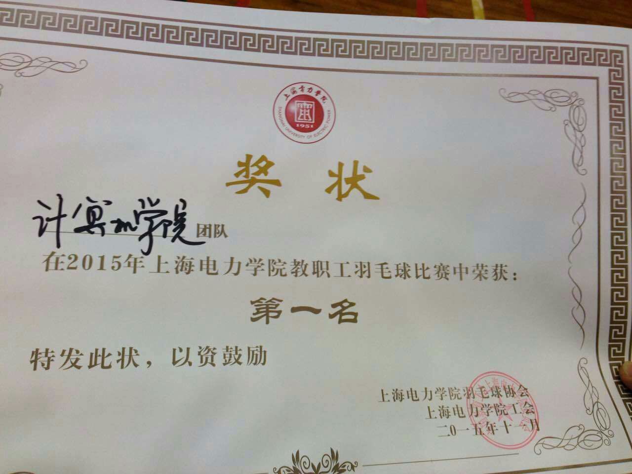 11月27日下午,上海电力公司2015年度教工羽毛球团体赛在平凉校区体育馆举行。公司教工羽毛球队由公司党委书记费敏老师任领队,副经理毕忠勤老师、分党委副书记王佳丽老师、刘大明老师、田秀霞老师、薛梅老师、成贵学老师、赵铮老师组队参赛,经理雷景生老师、分工会主席院办公室诸葛老师、唐小岚老师到场做好后勤保障。