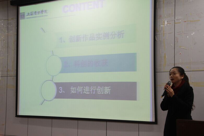 视频回顾了科技月活动的精彩场景。赵铮老师为创新创意标志语大赛获奖的同学进行颁奖,同时鼓励同学们积极参与更多的创新创意活动,将科创与生活有机结合起来。刘大明老师为同学们讲述了申报科创的流程、时间节点和方式,提倡处在互联网时代的老员工,特别是计算机专业的员工,多用互联网思维去思考、去科创,也可以就当下很热的“物联网”、“树莓派”、“无人机”等方面进行科技创新。随后徐嘉辰同学和邱依强同学分别向在座的同学简要介绍了公司机器人实验室的旅游机器人和教育机器人,并现场展示了教育机器人的擂台赛。朱瑞老师分享了她的科创经历,用视频的方式演示了六轮小车适应各种不同类型路面的机器人、可以跳舞的机器人。她告诉同学们,科创不仅可以丰富专业知识,还可以提高动手能力,学会展示自己作品的方法,学会表达自己的思想、锻炼临场应变的能力。最后,副经理毕忠勤老师致闭幕词,他就“如何创新”这个问题,提出了了解创新设计、确定设计主题、培养创新思维三个方面的要求。