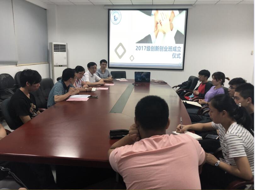 首先班主任魏为民老师介绍了从第一届创新创业班成立以来的学习模式和取得的成就,介绍了2017055班班级情况,并与同学们约法三章希望同学们自律、自强;其次由副经理毕忠勤老师向同学们介绍教学工作和课程安排,毕老师希望大家注重课外时间,进行团队建设,增加班级凝聚力;公司党委副书记余南飞老师从学工角度提出要求,希望同学们在思想上保持上进,主动向党组织靠拢,投身于班团建设;学习上发挥主观能动性,从各方面锻炼提升自我;生活中学会珍惜当下,互帮互助,培养团队精神。最后由朱佳老师总结本次活动,并组织师生交流分享。