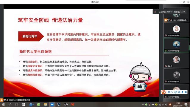 2022年11月至今,永利集团304am登录以“E路领航”辅导员思政工作室为依托,通过集体备课和研讨,立足年级、专业特点,面向公司全体员工线上、线下开展多场“弘扬宪法精神 传递法治力量”Z世代班会。