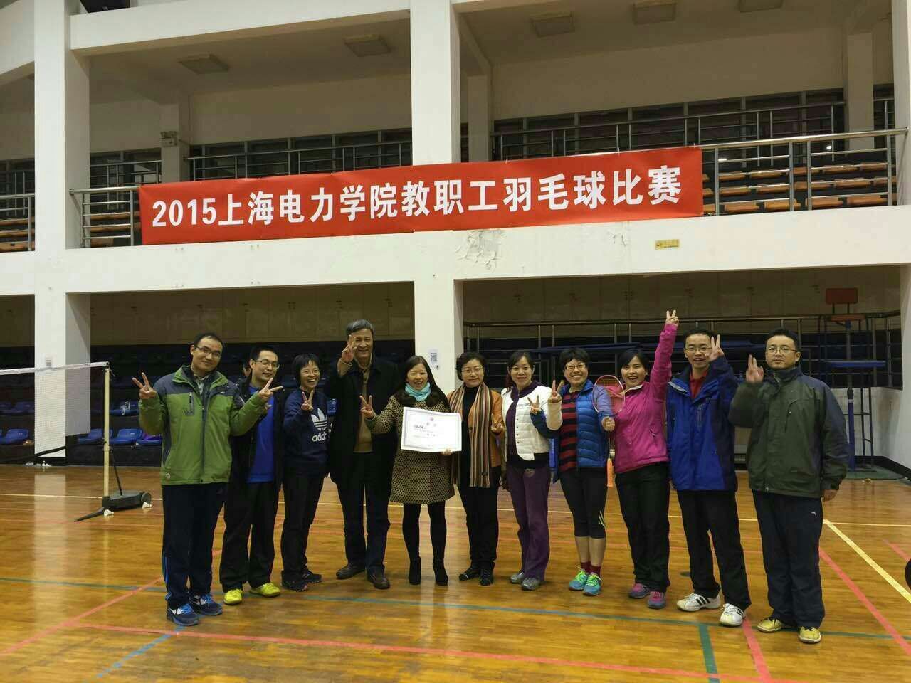 11月27日下午,上海电力公司2015年度教工羽毛球团体赛在平凉校区体育馆举行。公司教工羽毛球队由公司党委书记费敏老师任领队,副经理毕忠勤老师、分党委副书记王佳丽老师、刘大明老师、田秀霞老师、薛梅老师、成贵学老师、赵铮老师组队参赛,经理雷景生老师、分工会主席院办公室诸葛老师、唐小岚老师到场做好后勤保障。