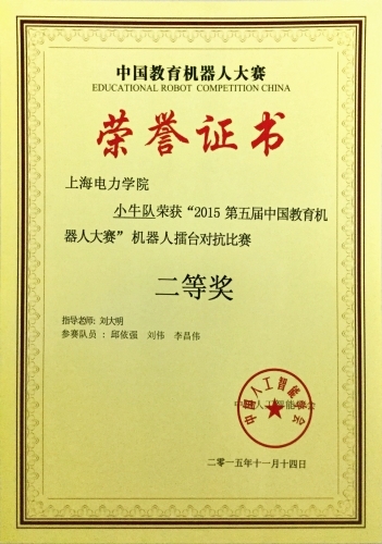 近日,由中国人工智能学会主办的第五届教育机器人大赛在东南大学举行,永利集团304am登录邱依强、李昌伟、刘伟三位同学组成的机器人实验室代表队在全国22支参赛队伍中脱颖而出,获得机器人擂台对抗赛二等奖佳绩。