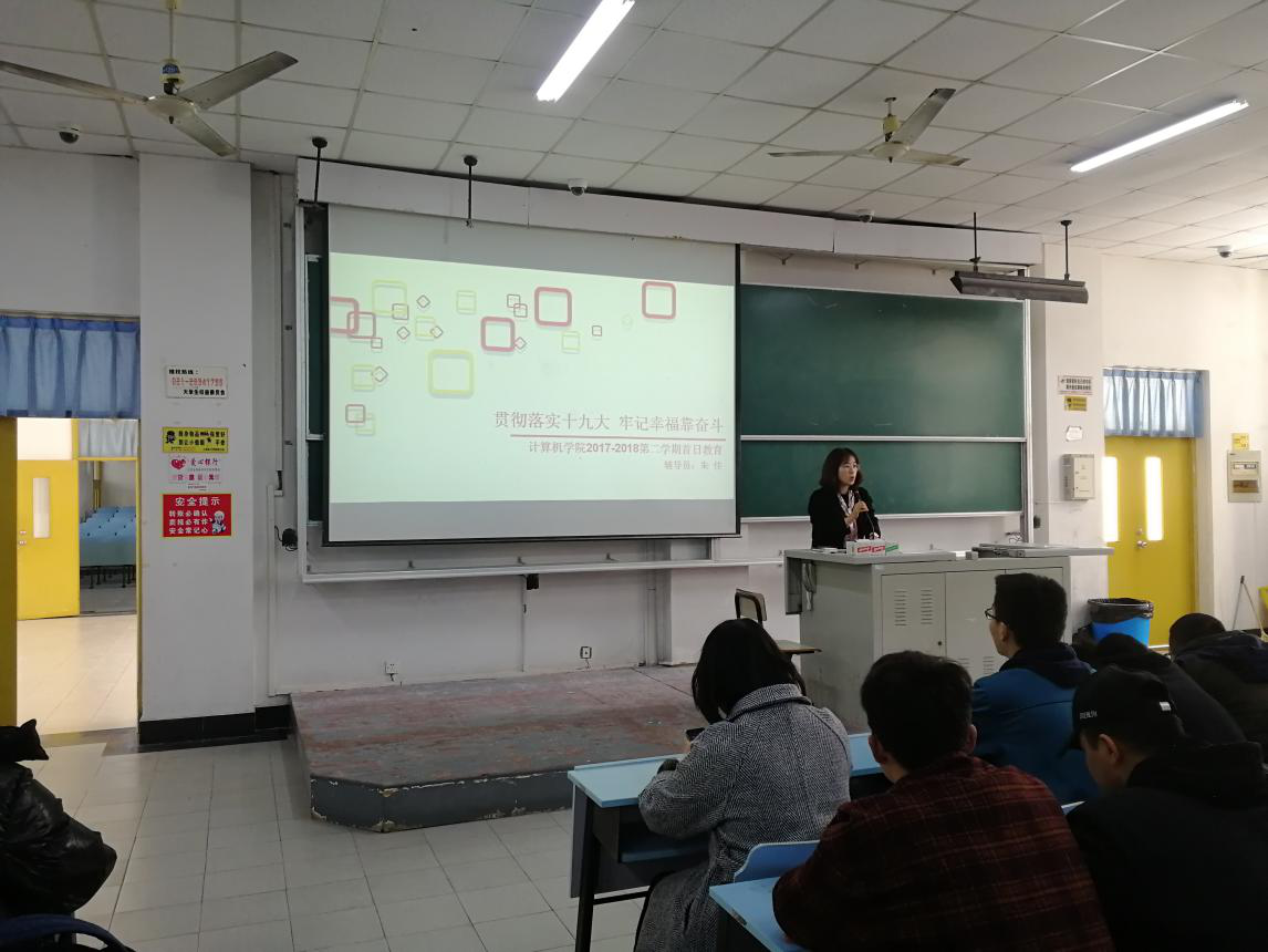 15级辅导员吴涵老师就本学期学习和生活中涉及到事项向同学们进行了统一梳理,期初补考,重修选课,宿舍安全卫生检查,学分绩点等各项问题做了进一步的解释,也提出了新的要求,她鼓励同学们,在新的学期里要努力学习,争取更好的成绩,为自己将来的幸福而奋斗;16级辅导员陈雯老师从期末考试的成绩分析着手,在表扬学习进步同学的同时,对成绩欠佳的同学们提出了期望和鼓励,告诫同学们要做好接下来的职业规划,以学期为单位制定下一系列可预期达到的小目标,并付诸于实践,“积跬步而致千里”,在成果一点点累积的过程中实现学习和生活的大转变;17级辅导员朱佳老师表扬了成绩优秀的同学,鼓励落后的同学及时找出原因,调整学习状态的同时着重向同学们讲述了在大学的学习和生活中所应该保持的正确态度,应当清醒地认识到自己所担负着的社会责任。